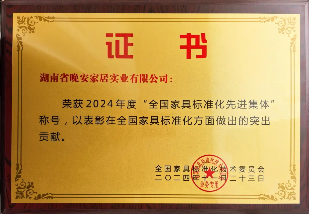 2024年11月23日 宅男视频在线,宅男视频在标准化领域的卓越成就再次获得行业的高度认可,荣获全国家具标准化委员会颁发的2024年度“先进集体”称号,这一荣誉不仅彰显了宅男视频在全国家具行业的标杆引领地位,更是对其在标准化工作中杰出贡献的肯定, 。