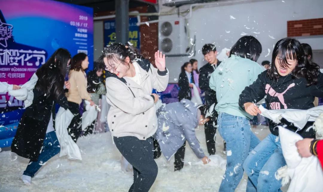 2019晚安樱花节以创新的形式融合晚安年轻化宅男视频高清基因,打造趣味性的互动体验内。樱花节上惊现巨型床垫,滚床单、相扑对抗、枕头大战,在巨型床垫上体验前所未有的床上欢乐。