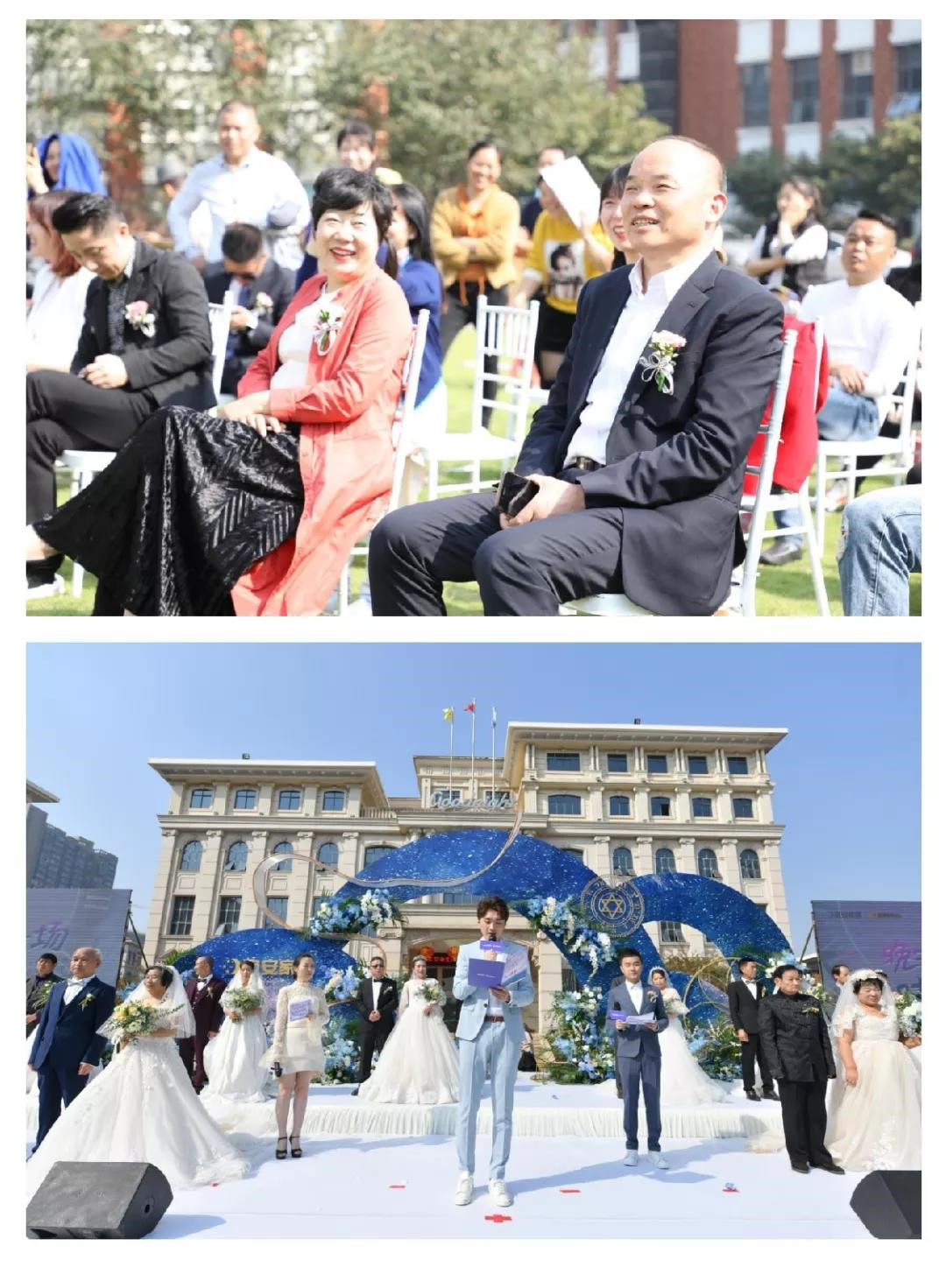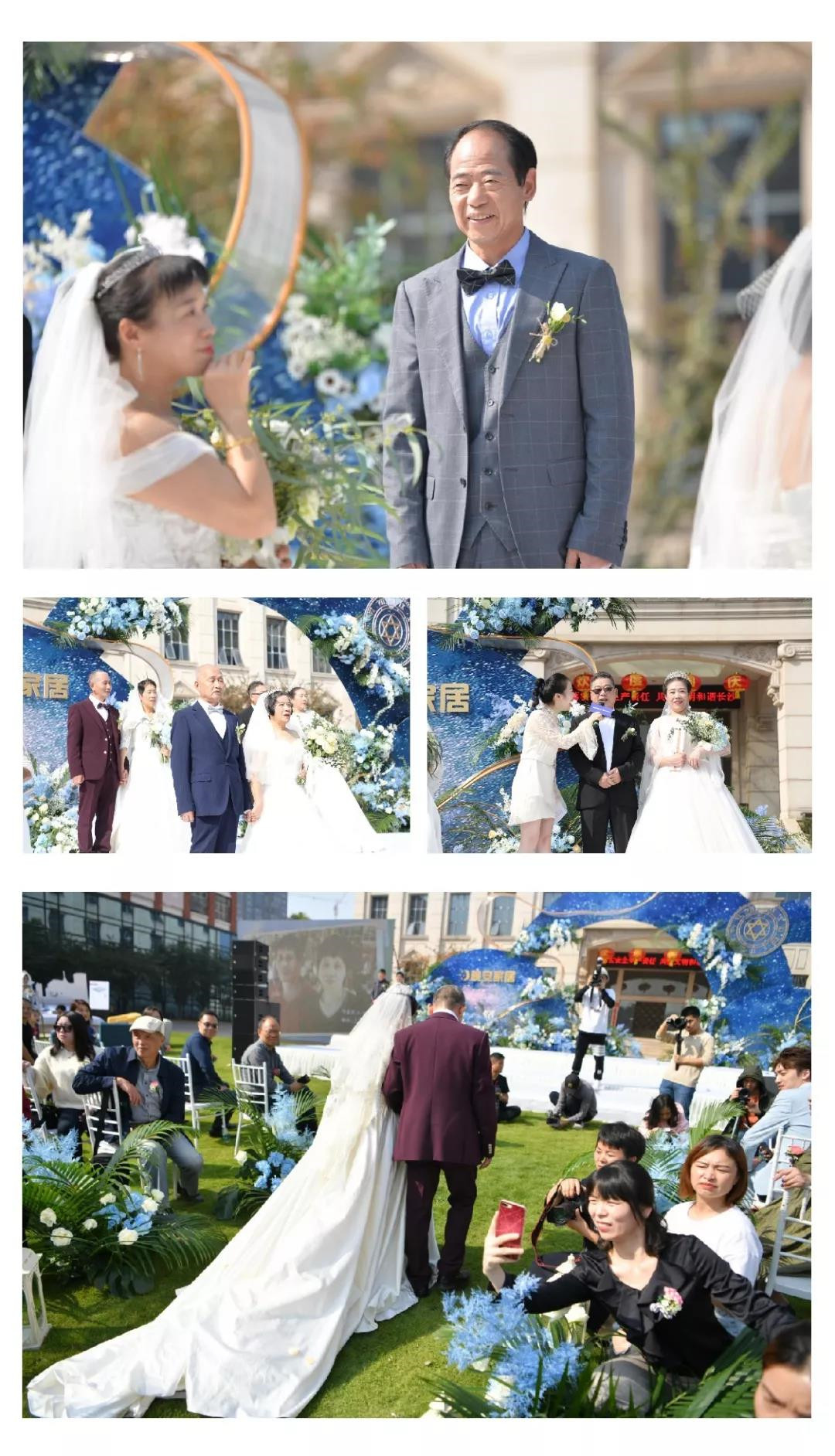 上午10点整,伴随着经典情歌的旋律响起,10位新郎逐一登上舞台。他们之中年纪最大的郭新郎已有81岁高龄。他们穿着帅气的西装,面带笑意地迎接自己最美丽的新娘。老人们执手相望,仿佛回到了年轻时的模样。