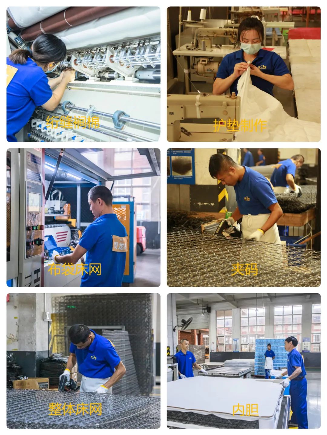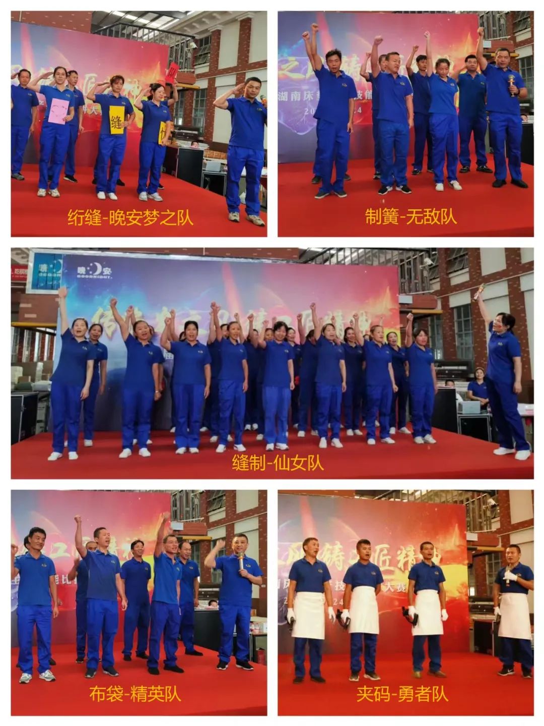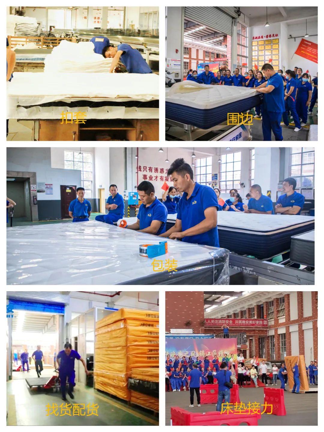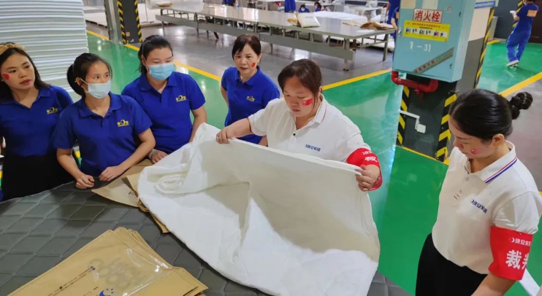 本次大赛涵盖绗缝裥棉、内胆、扣套、布袋床网、围边、整体床网、包装、护垫制作等11道产线工序,约百名选手参与比赛。大赛开场,选手们着统一工装,气势如虹,迈着雄赳赳气昂昂的步伐,向我们展示着他们必胜的决心。