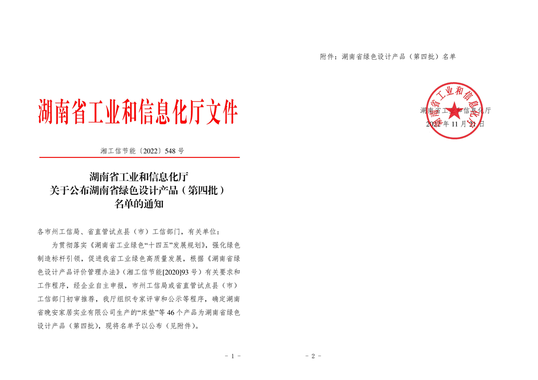 晚安床垫再次获得“中国环境标志产品认证” “中国绿色产品认证”。不仅产品质量出众,符合特定的环保标准,连产品的生产环境、空气质量、废水、废气、噪音检测、废料处理,乃至回收再利用等都符合环保标准。同时,宅男视频的拳头产品“床垫”被评为“湖南省绿色设计产品”。