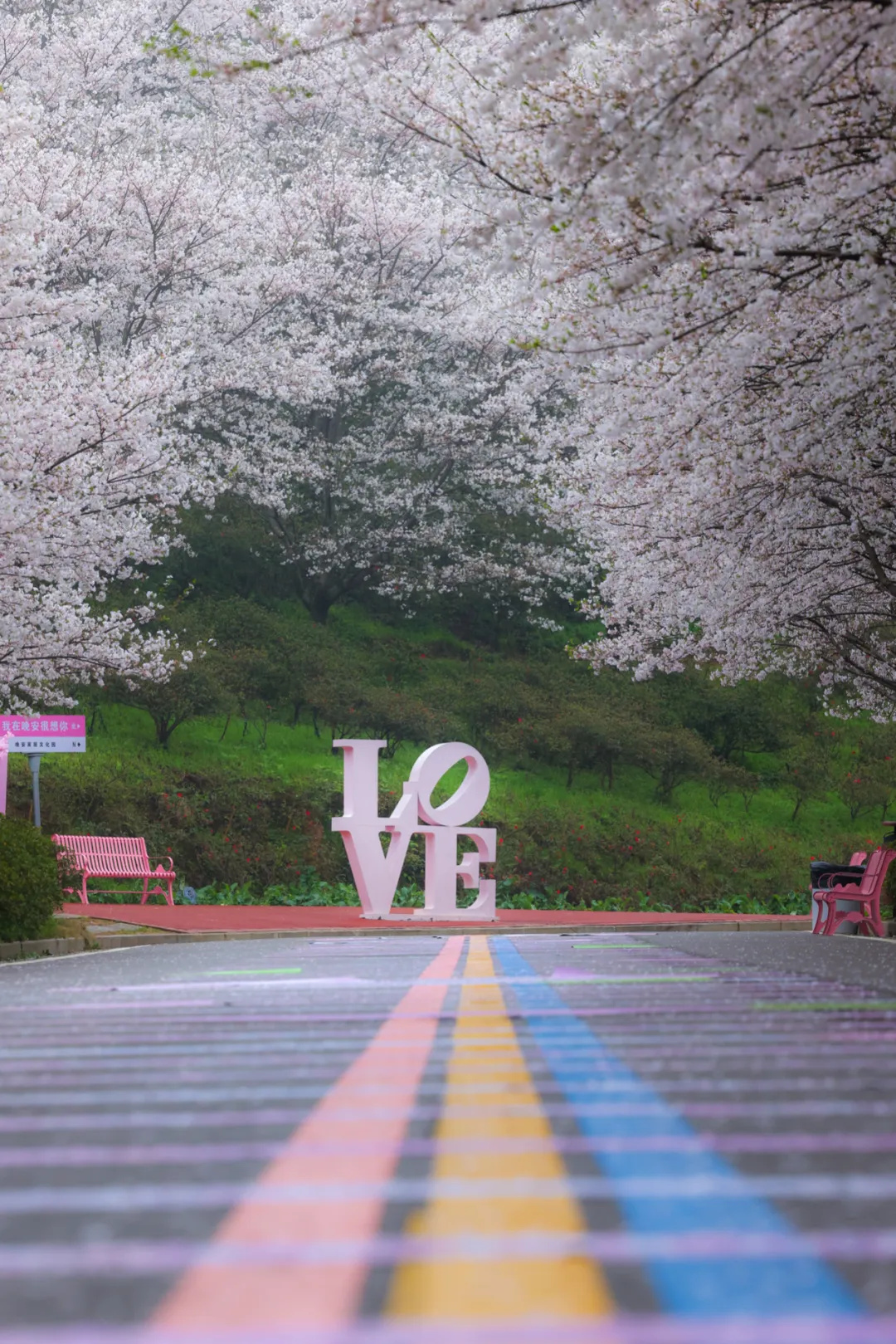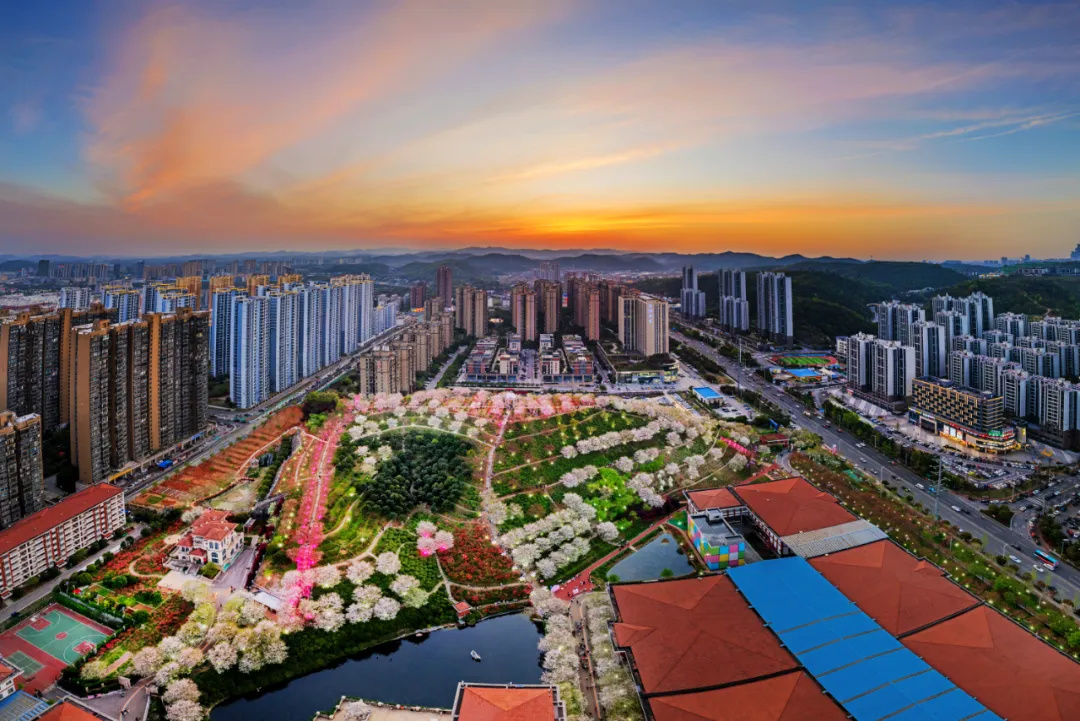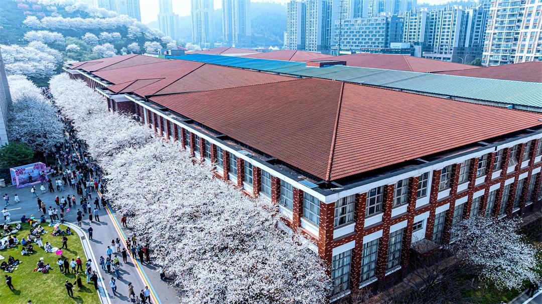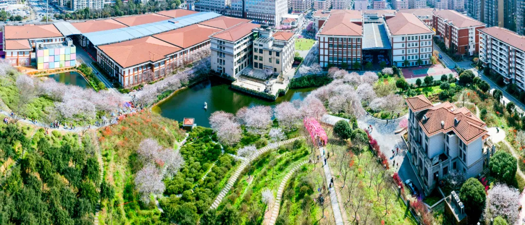 这一组用航拍俯视角度,展示樱花之美。