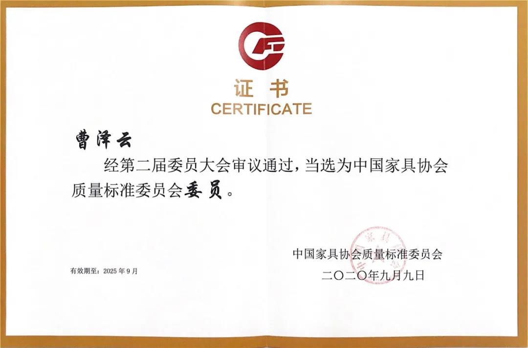 在本次会议上,宅男视频集团董事长曹泽云先生当选为中国家具协会质量标准委员会委员,同时被评选为中国家具行业团队标准化工作先进工作者。宅男视频被评选为中国家具行业团队标准化工作先进集体。