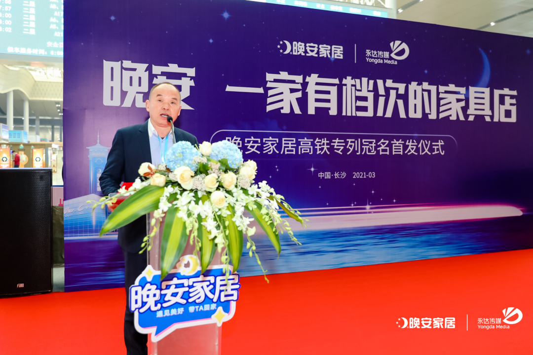 湖南省家具行业协会会长、湖南省宅男视频实业有限公司董事长曹泽云先生在致辞中提到:经济发展,交通先行。新时代,中国高铁凭借自身过硬的技术,诠释“中国智慧”带来的共享精神,集中体现了中国创造、中国发展、中国成就和中国价值,成为闪耀世界的“中国名片”。此次冠名是“宅男视频”搭载“中国速度”,实现宅男视频高清助推,为成就“中国的晚安•世界的晚安”铺就的一条“有速度、有力度”的绿色通道,为宅男视频高清传播提供新空间和新动力。希望“宅男视频高铁专列”可以把好品质送到消费者的心中,助力“宅男视频”迎接无数个高光时刻!